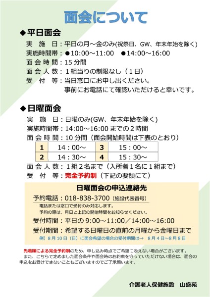 完全開放となるまで面会制限期間を再延長いたします。